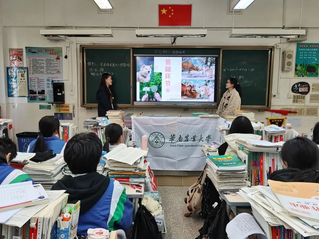 在广州市第八十六中学,队员们更是与同学们进行了深入的互动交流。他们不仅解答了同学们关于专业选择、大学生活等方面的疑问,还分享了自己在华农的学习经验。一位高三学生在听完宣讲后激动地说:“我一直对动物科学很感兴趣,今天听了学长学姐的介绍,我对华农更加向往了,我一定要努力考进去!”