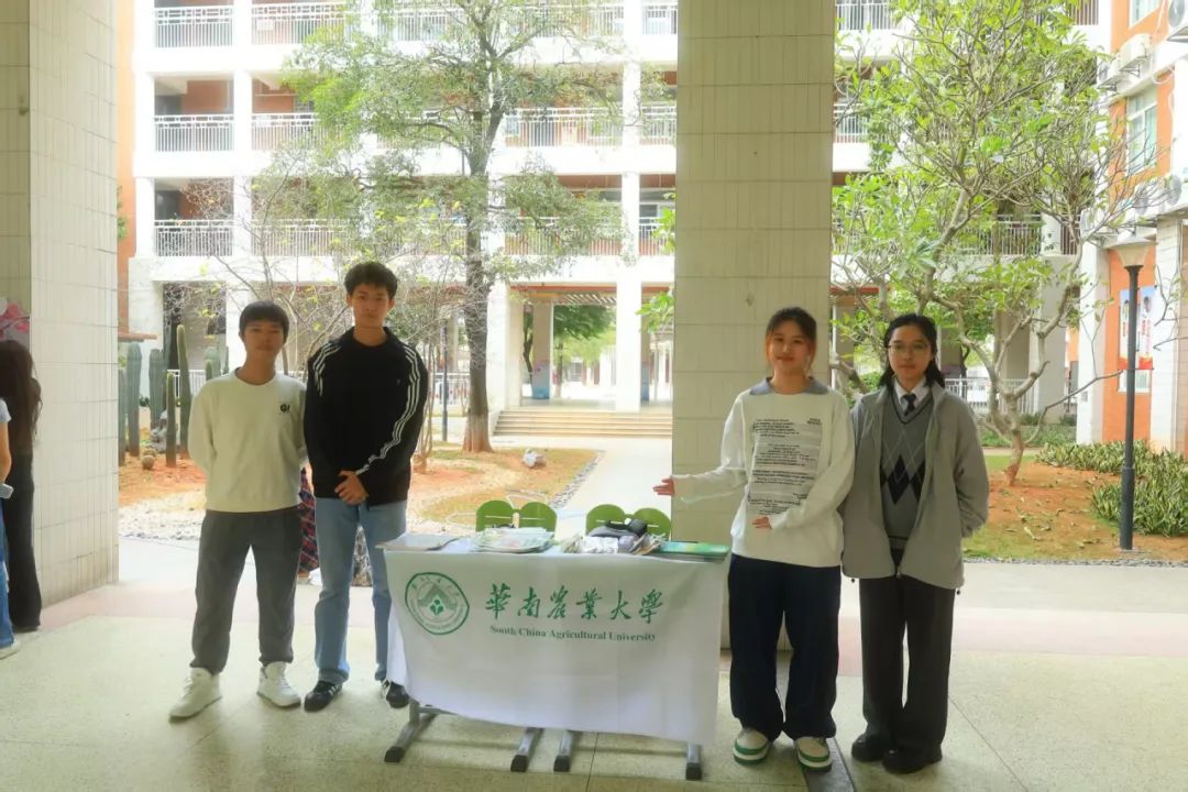 广州市执信中学寒招队伍回到执信,在本部和天河校区分别开展寒假招生宣传。我们精心准备,派发宣传册和精美物料,通过生动的 PPT 展示、精彩的讲解介绍,全方位呈现华南农业大学的校园风貌、学科特色、专业优势 。同时,我们结合自身在华农的学习与生活经历,为学弟学妹们答疑解惑,让他们更加深入地了解华农。