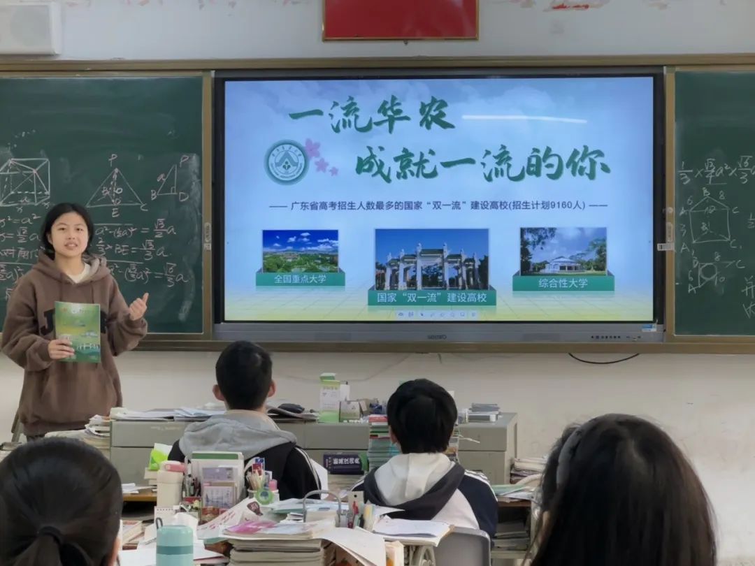怀揣着对华南农业大学的热爱与自豪,我们步伐轻快地走进普宁市第二中学。在高三的教室里,我们化身梦想引路人,以真挚的话语、鲜活的故事,为同学们带来一场关于梦想与未来的生动分享,点亮学子们心中的希望之光 。