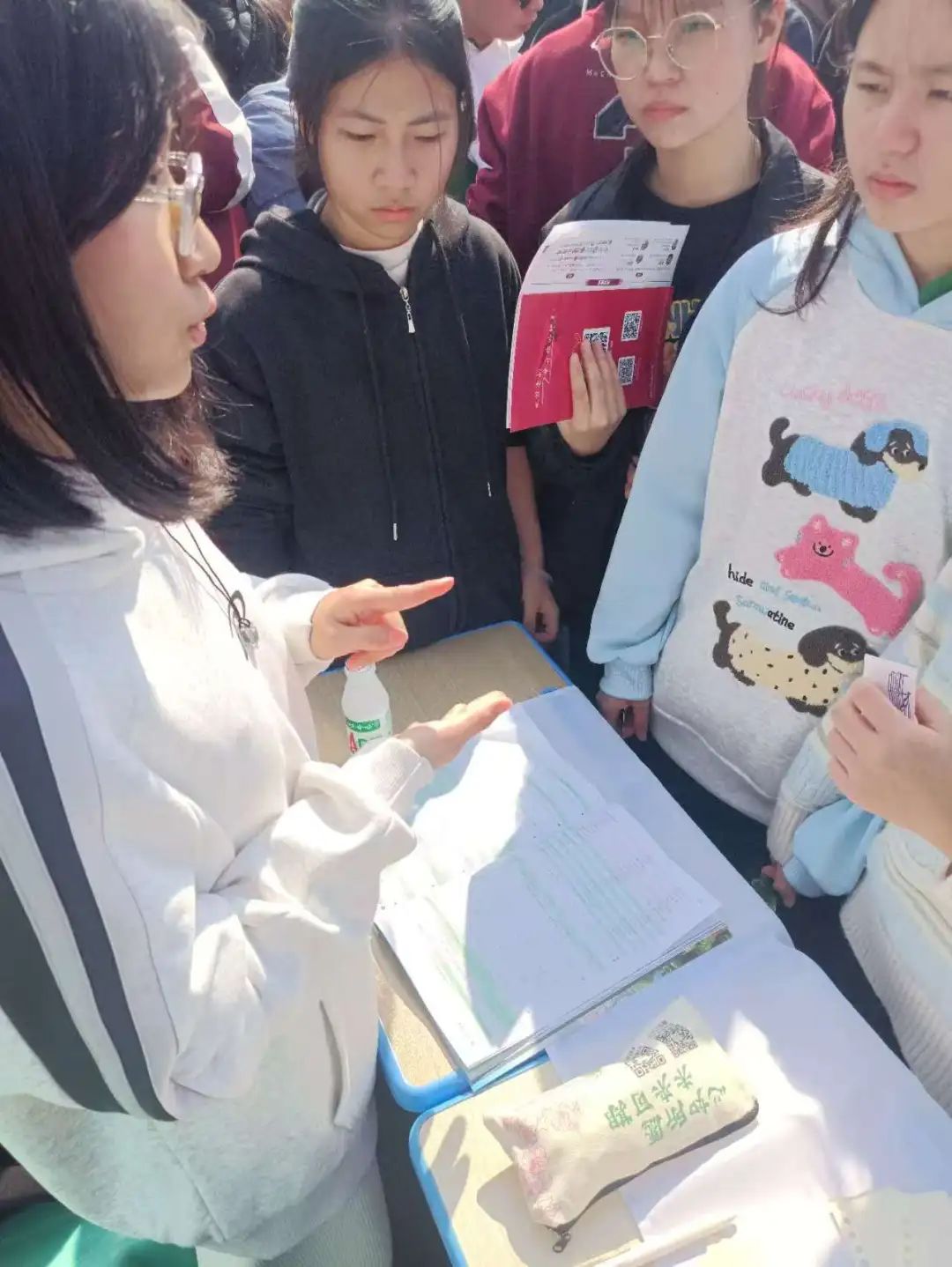在摆摊活动中,许多同学是第一次听说华南农业大学,甚至误以为华农只是一所农业院校。张艺馨通过耐心细致的讲解,让同学们了解到华农不仅是广东省的双一流高校,更是一所综合性院校,农业学科强势的同时,理工科专业也非常出色。当提到华农的“牛学长”和酸奶时,同学们的兴趣与憧憬明显提升。