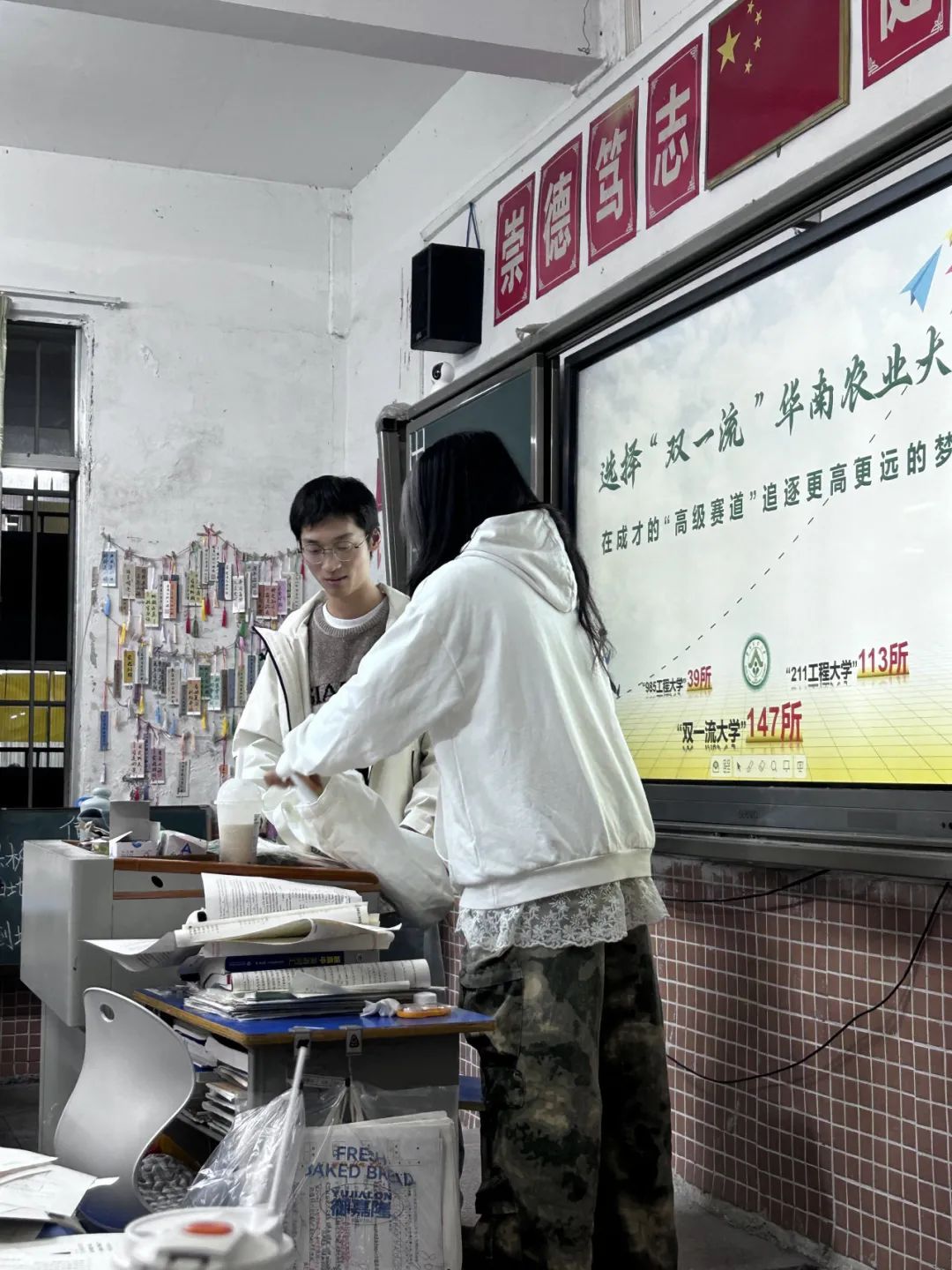 晚自习的铃声敲响,校园里满是求知的氛围。我们轻轻踏入了黑龙江省五大连池市实验中学的校园,轻声分享自己在华南农业大学的学习日常、丰富多彩的社团活动,还有那些为梦想拼搏的难忘瞬间。拉近和同学们的距离后,队员们绘声绘色地讲述着大学的广阔天地,让高三学子们仿佛已经看到了未来的无限可能。