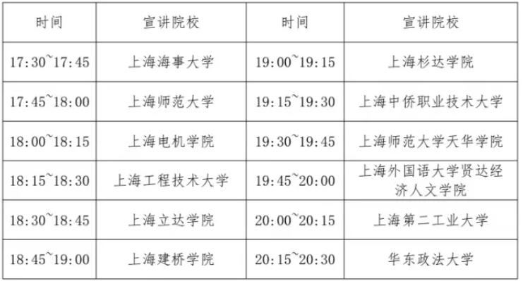 本次活动共邀请12所本科院校参与,具体名单及直播时间如下:
