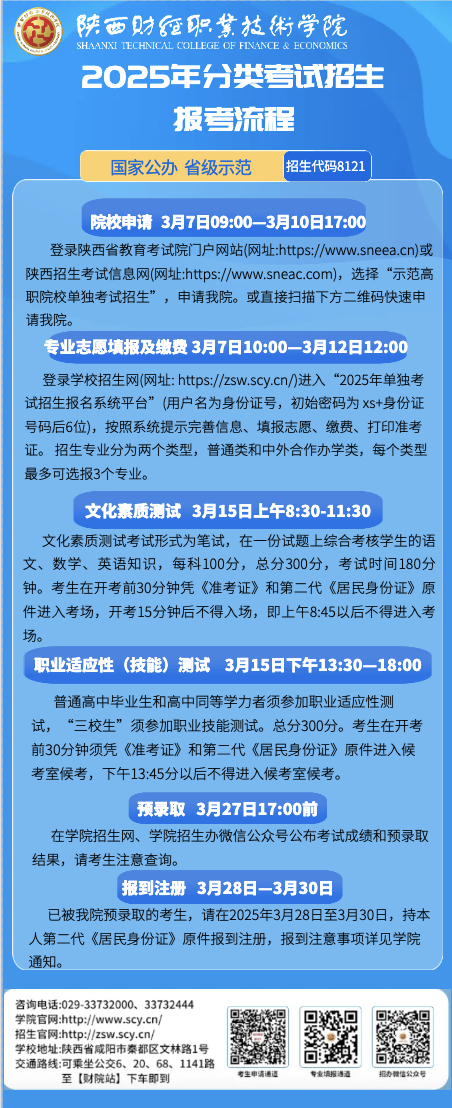 考生关注 | 陕西财经职业技术学院2025年分类考试招生报考指南