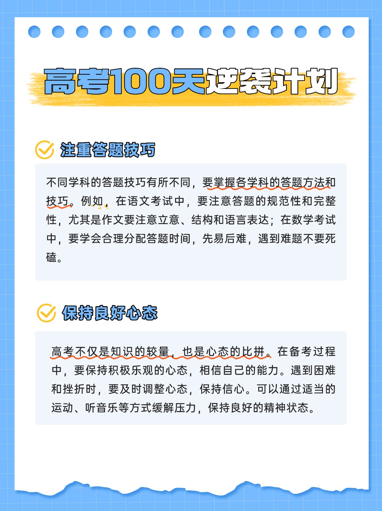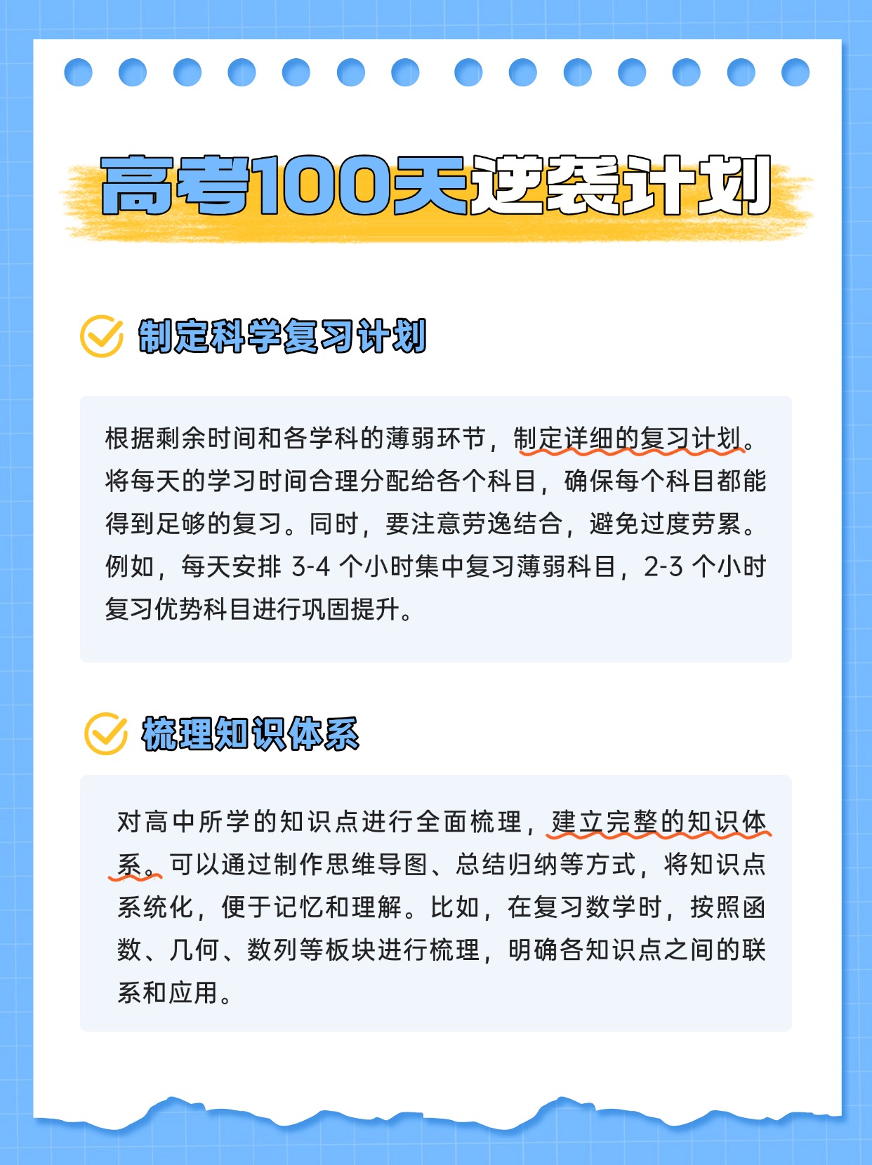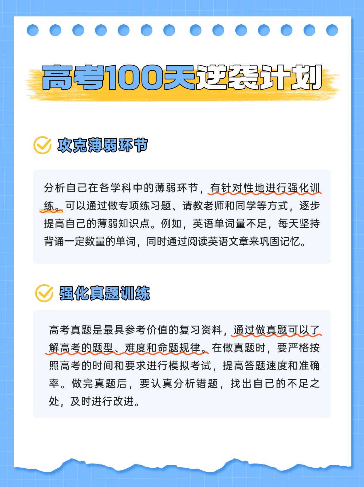 距离高考还有100天时间,虽然紧张,但合理规划、高效复习依旧能帮你显著提升分数,下面是小优整理的要点: