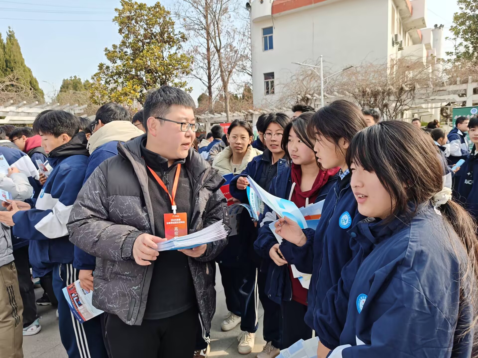 为做好2025年分类考试招生工作,进一步扩大学院影响力,有效开展招生宣传,吸引更多优质生源报考我院,近日,学院组织24名骨干教师组成招生宣传团队,分赴全省12条线路、100多所高中(含中职),开展分类考试招生线下宣传活动。