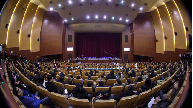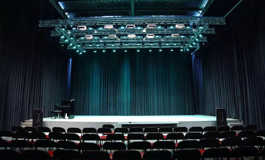 彩虹剧院为标准化大型演艺剧场,内设观众厅、排练厅等,三楼为音乐舞蹈学院教学楼,与音乐厅、音乐广场连为一体,是表演类专业的大型实训基地。