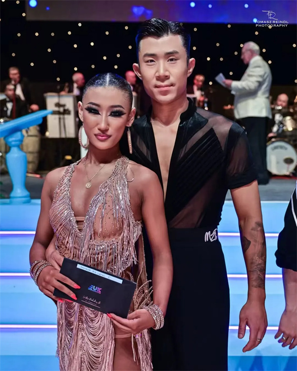 在1月21日至27日举行的2025英国UK舞蹈公开赛业余新星拉丁舞的比赛中,教师李昊航和选手郑思娜,经过六轮比赛的角逐,从200对来自世界各地的顶尖选手中,成功杀进决赛,取得了第五名的优秀成绩。
