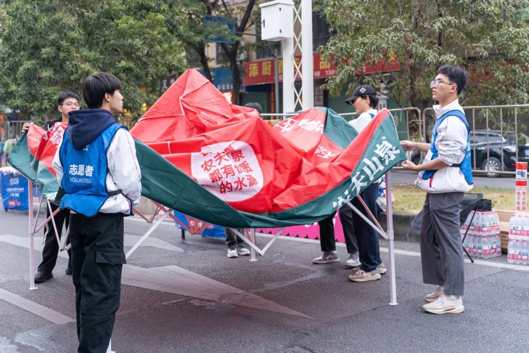 负责搭建补给站帐篷的志愿者们