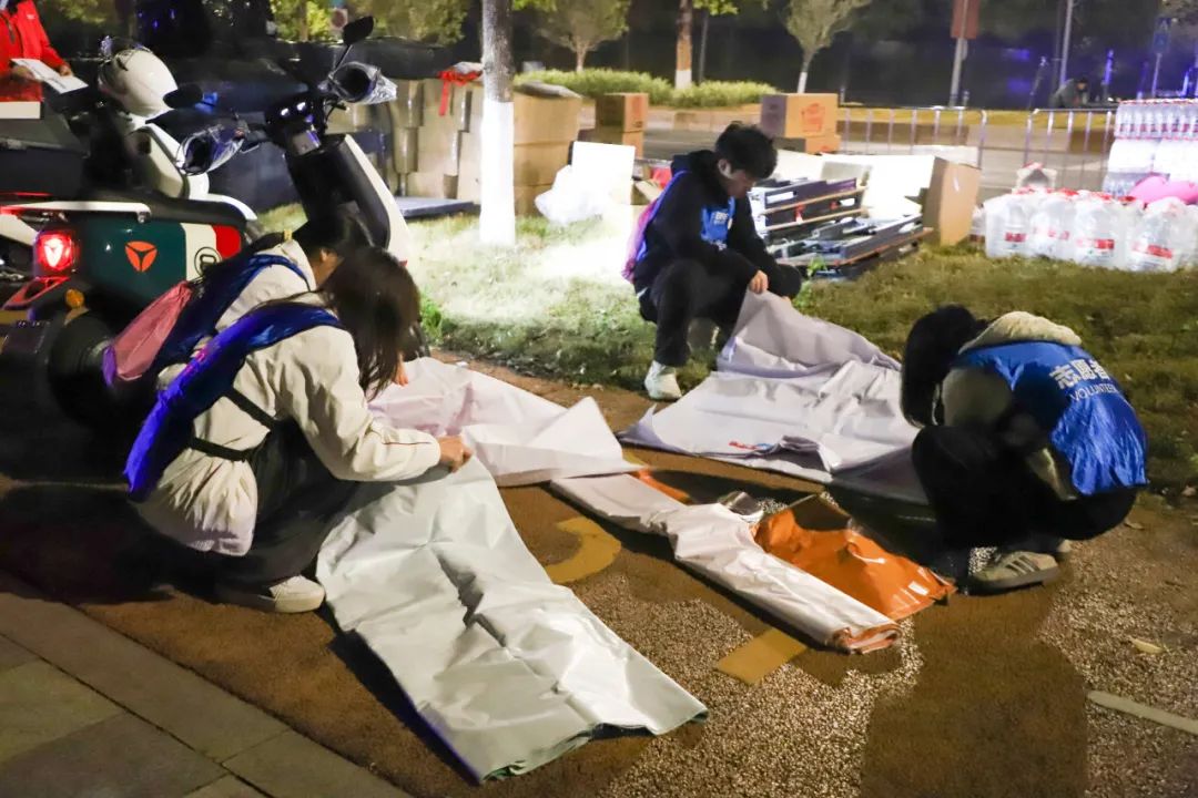 帐篷搭好后志愿者迅速将