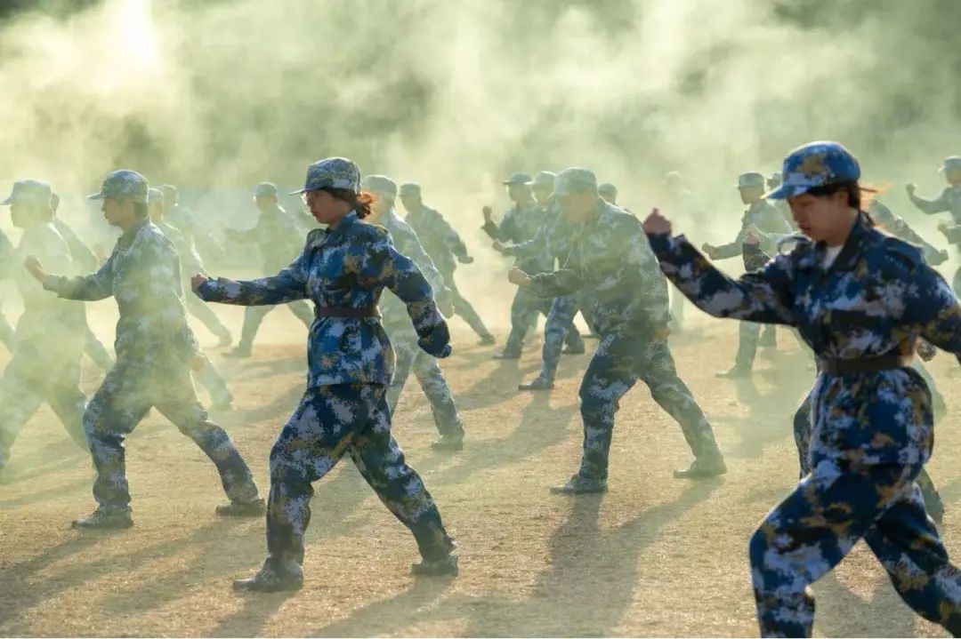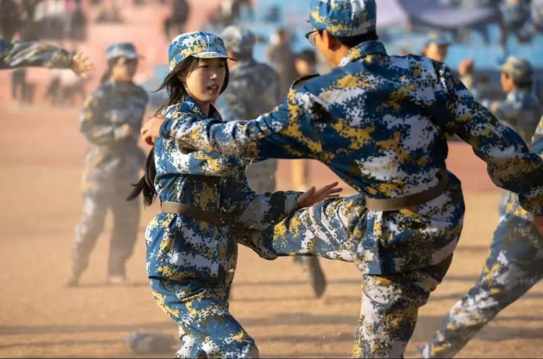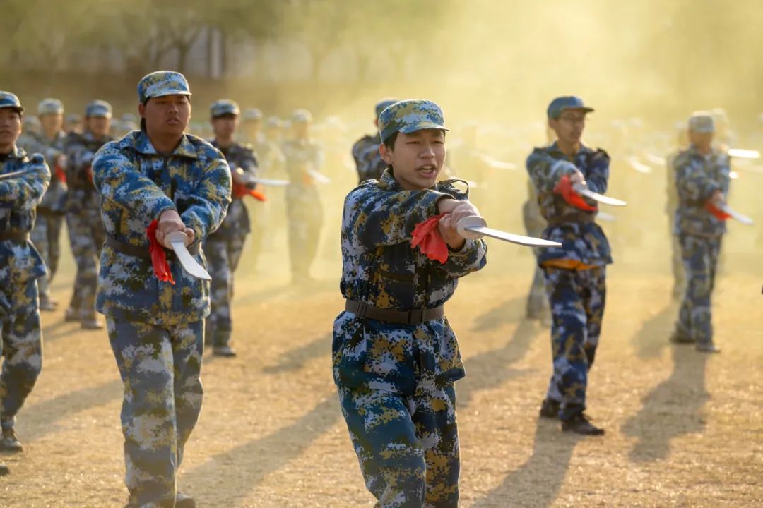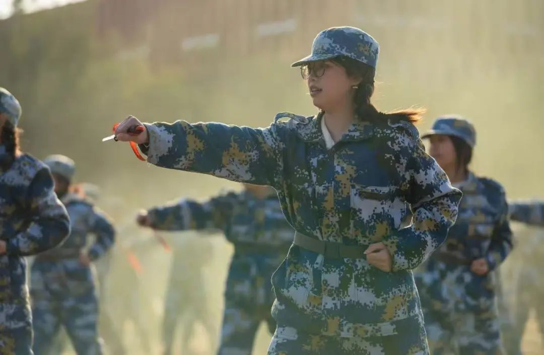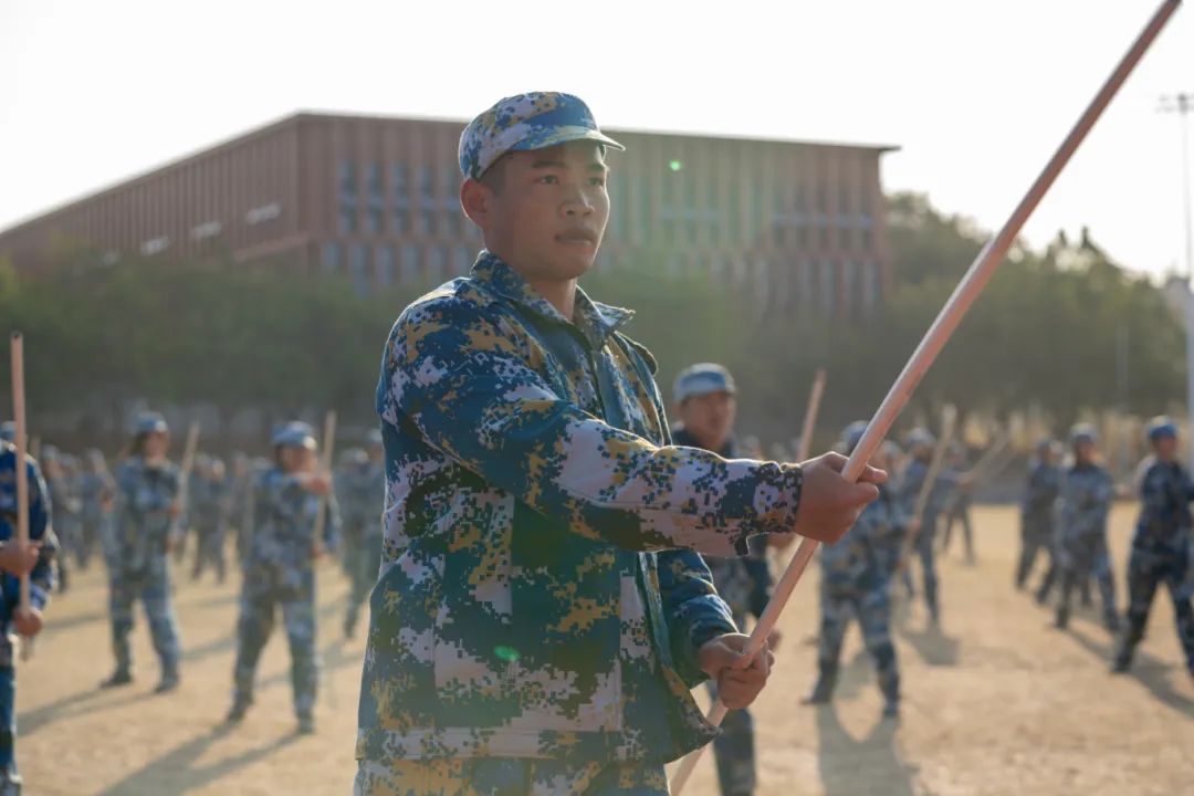 同学们身穿迷彩,持枪挺立,眼神坚毅。随着教官一声令“杀!杀!杀!”口号划破长空,他们突刺迅猛、格挡有下,力,动作整齐划一,每一次呐喊都充满力量。