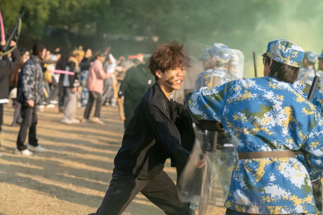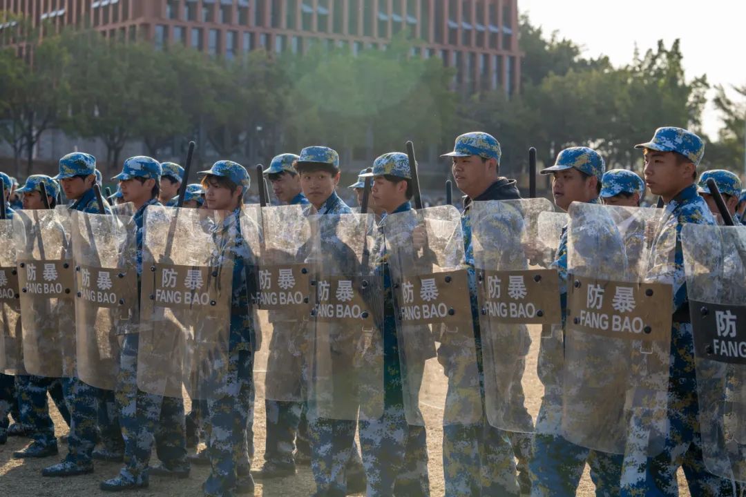警棍盾牌操方阵带来震撼一幕,同学们步伐铿锵,整齐划一,盾牌如坚固壁垒,警棍挥舞虎虎生风。推挡、戳击,动作干净利落,“杀”声震天,彰显无畏勇气与团结协作。他们用汗水铸就坚毅,以行动诠释担当。