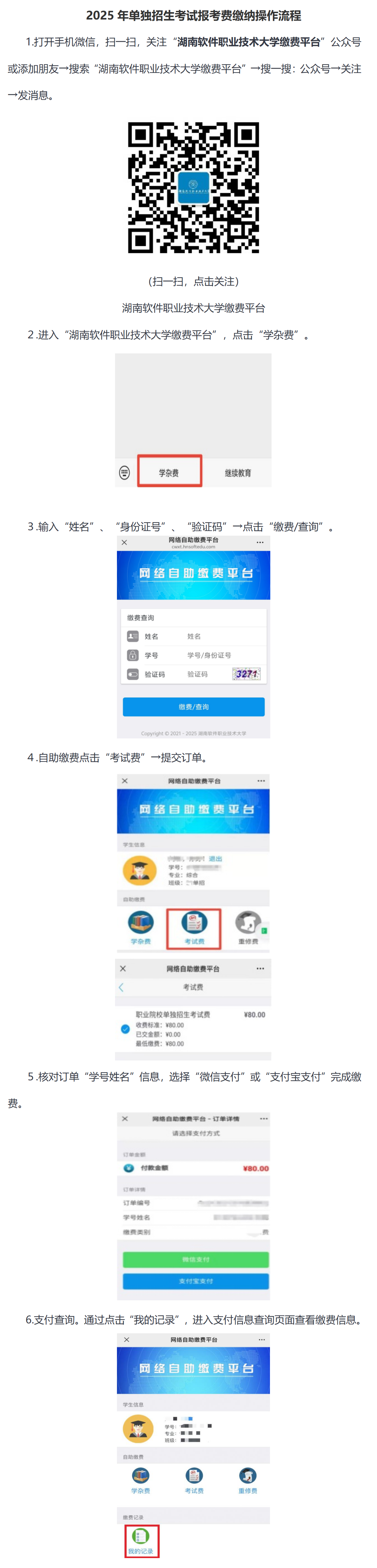 流程:请考生按照《2025年单独招生考试报考费缴纳操作流程》完成线上缴费。