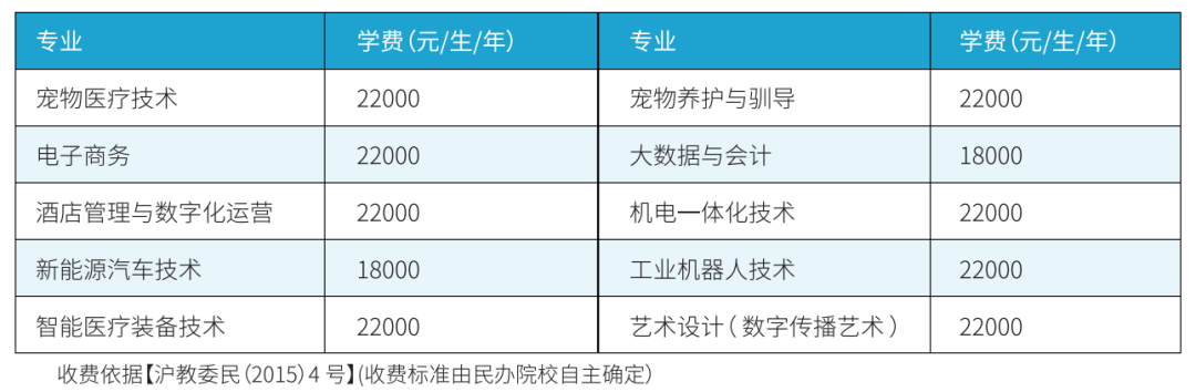 2500元/生/年【沪教委民(2015)4号】(收费标准由民办院校自主确定)