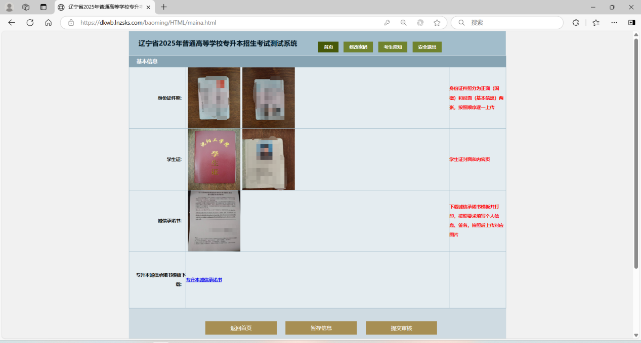 考生须根据报名系统提示及要求提交本人照片。该照片将用于专升本报名、考试、录取及入学后学籍注册,审核通过后无法修改。请考生务必严肃对待,按要求上传本人近期免冠照片,若因考生美颜、修图、翻拍或“海马体”照片等造成影响考试入场、录取后无法注册学籍、学信网对比不通过等情况,后果由考生本人承担。