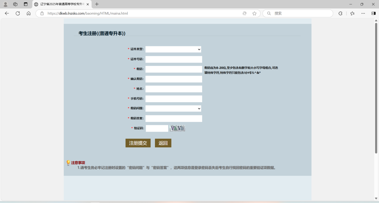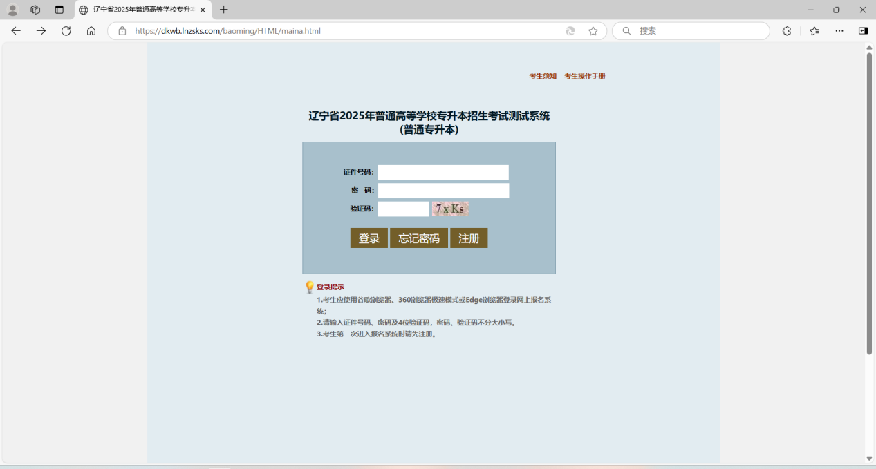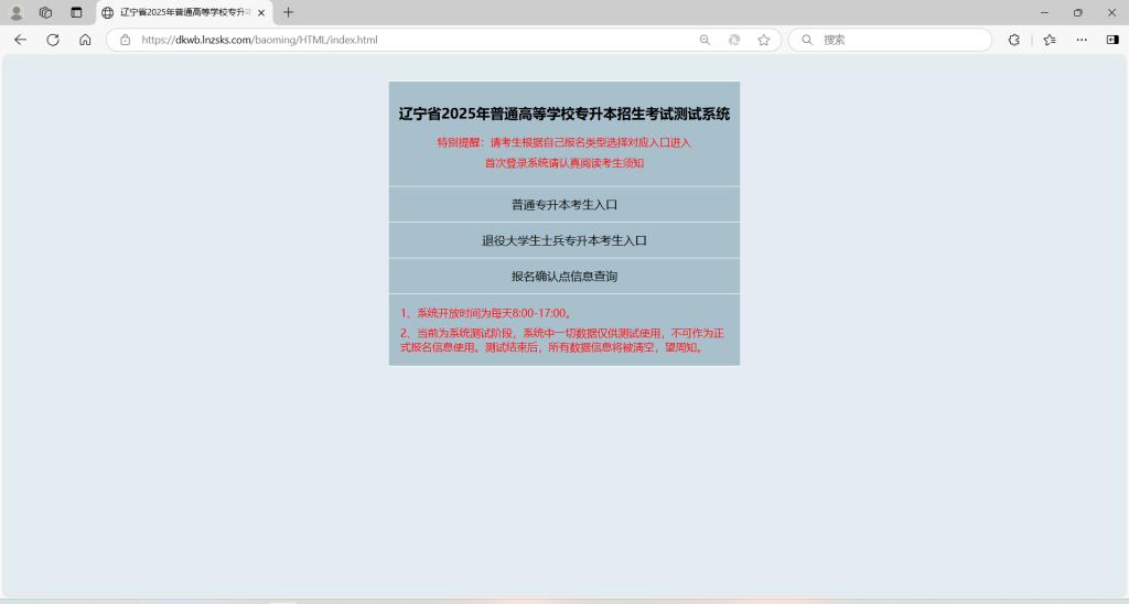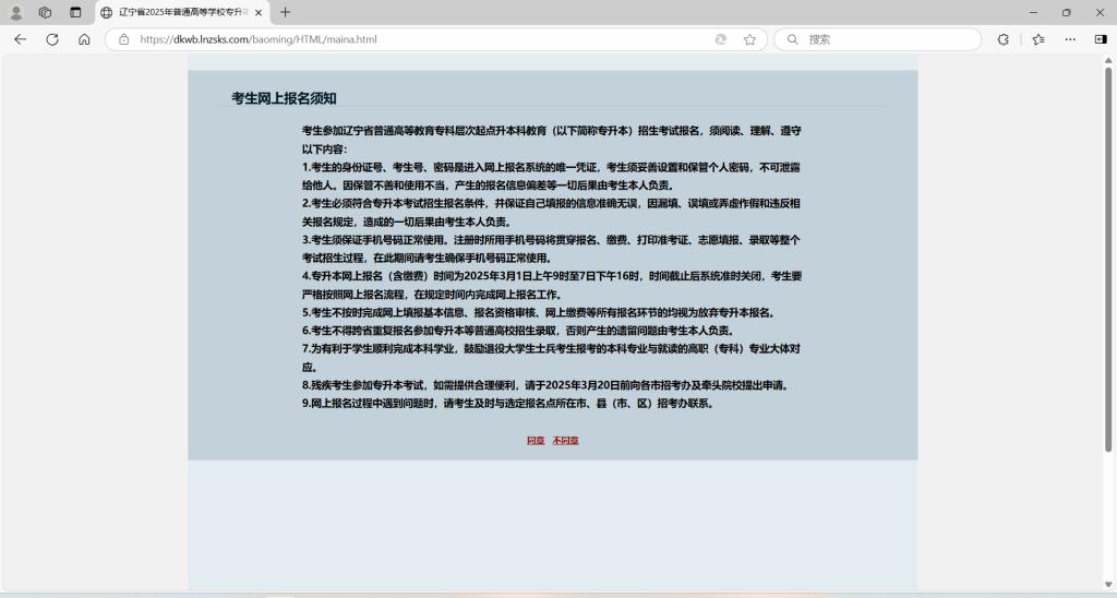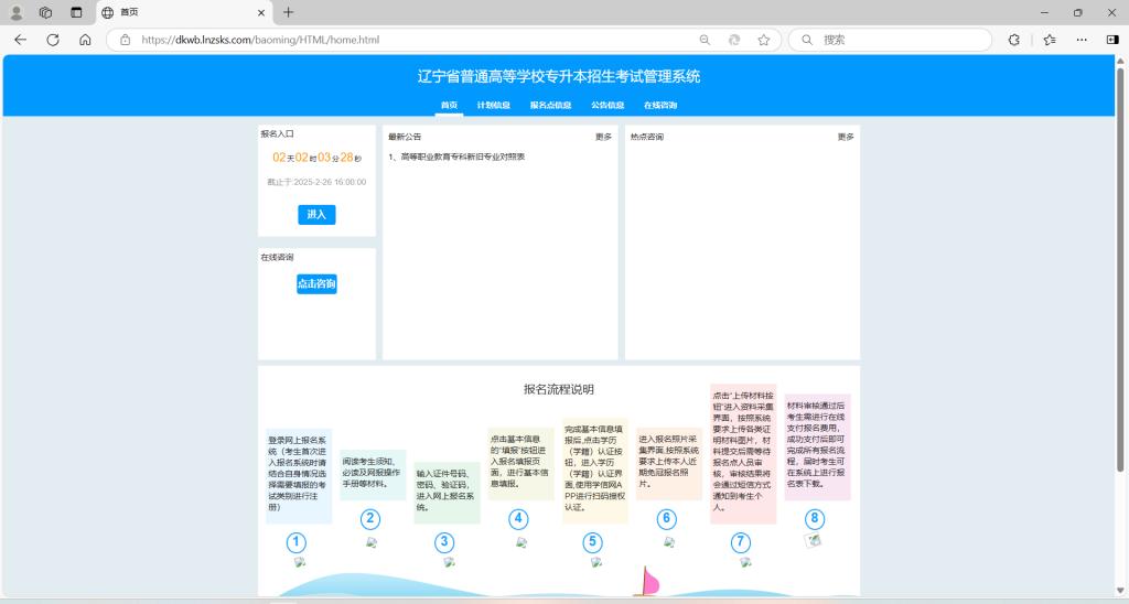 1.进入辽宁省普通高等学校专升本招生考试管理系统 (https://dkwb.lnzsks.com/baoming/HTML/home.html)