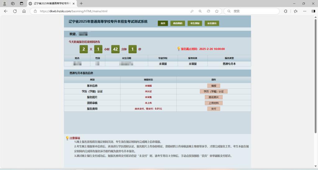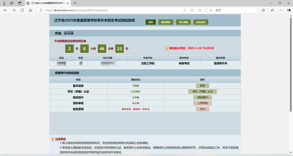考生须按规定自行上网缴纳文化基础课(公共课)报名考试费120元,缴费成功后自行下载打印《辽宁省2025年普通高校专升本招生考试报名信息登记表》。