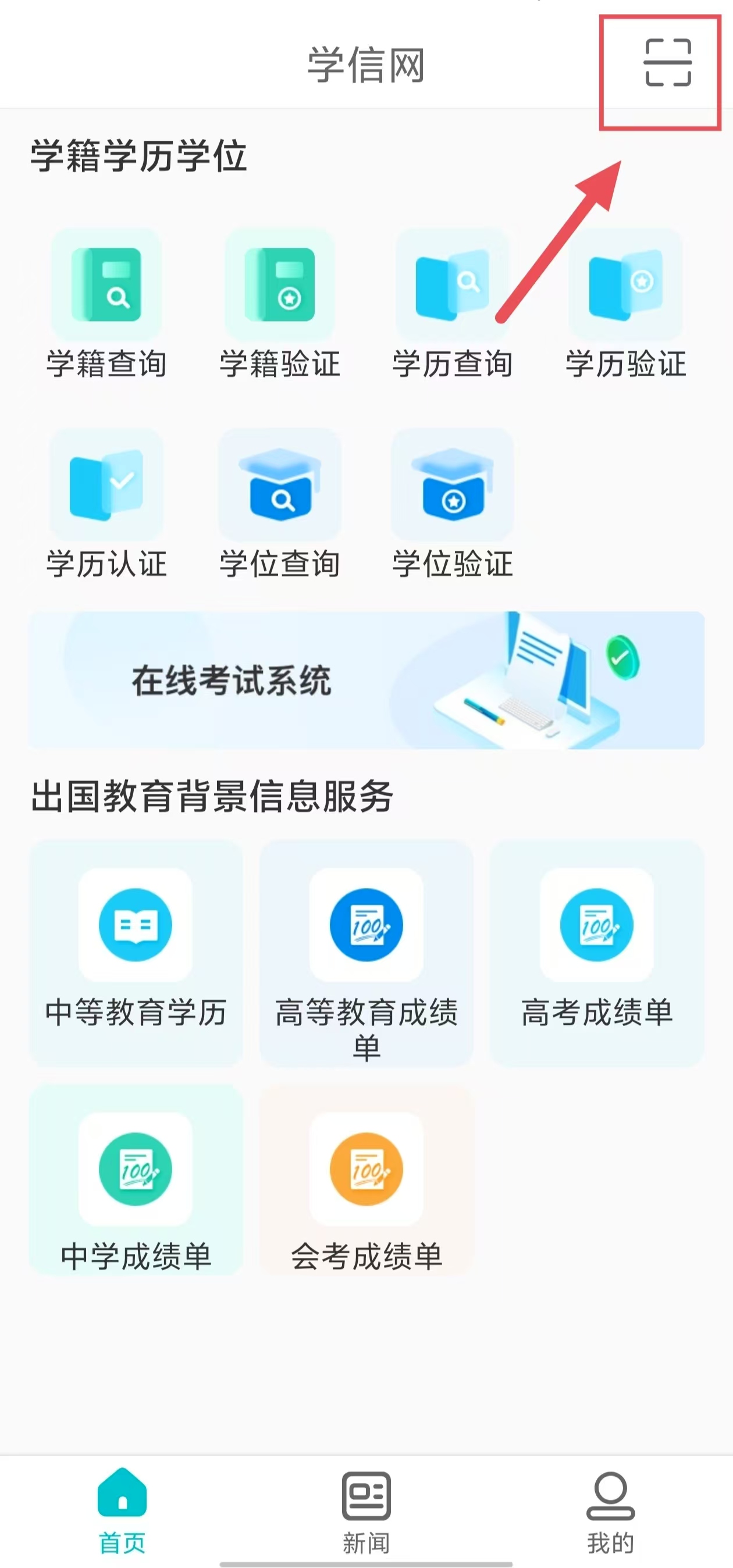 进入学历验证界面后,打开手机端“学信网APP”,点击右上角扫一扫,扫描二维码,进行学历认证