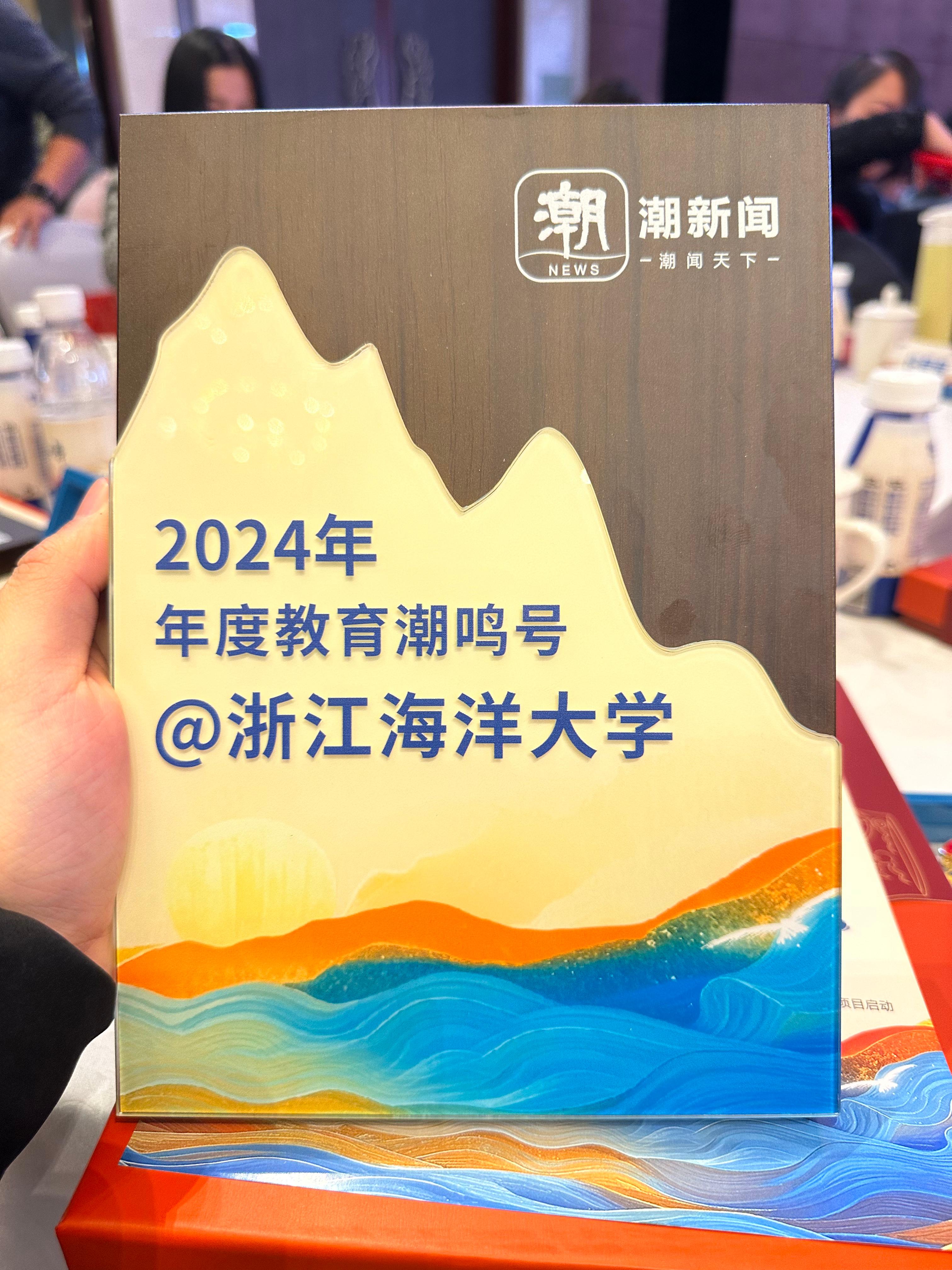 1月9日,潮新闻创作者生态扩圈大会在浙江杭州举行。会上公布了潮新闻年度影响力榜单,浙江海洋大学荣获2024年度教育潮鸣号。