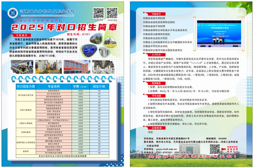 河南工业和信息化职业学院2025年对口招生简章(单页版)