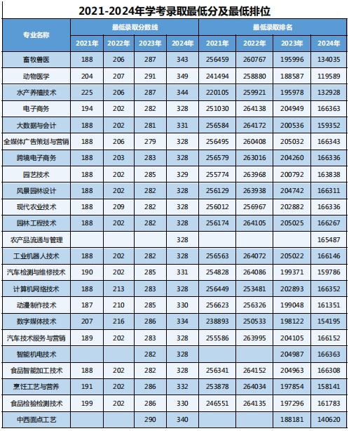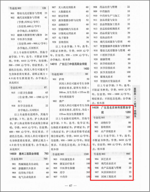 广东茂名农林科技职业学院2025年春季高考面向广东省计划在24个专业招生2732人,其中依学考计划招生1452人、“3+证书”(中职生)计划招生1280人。