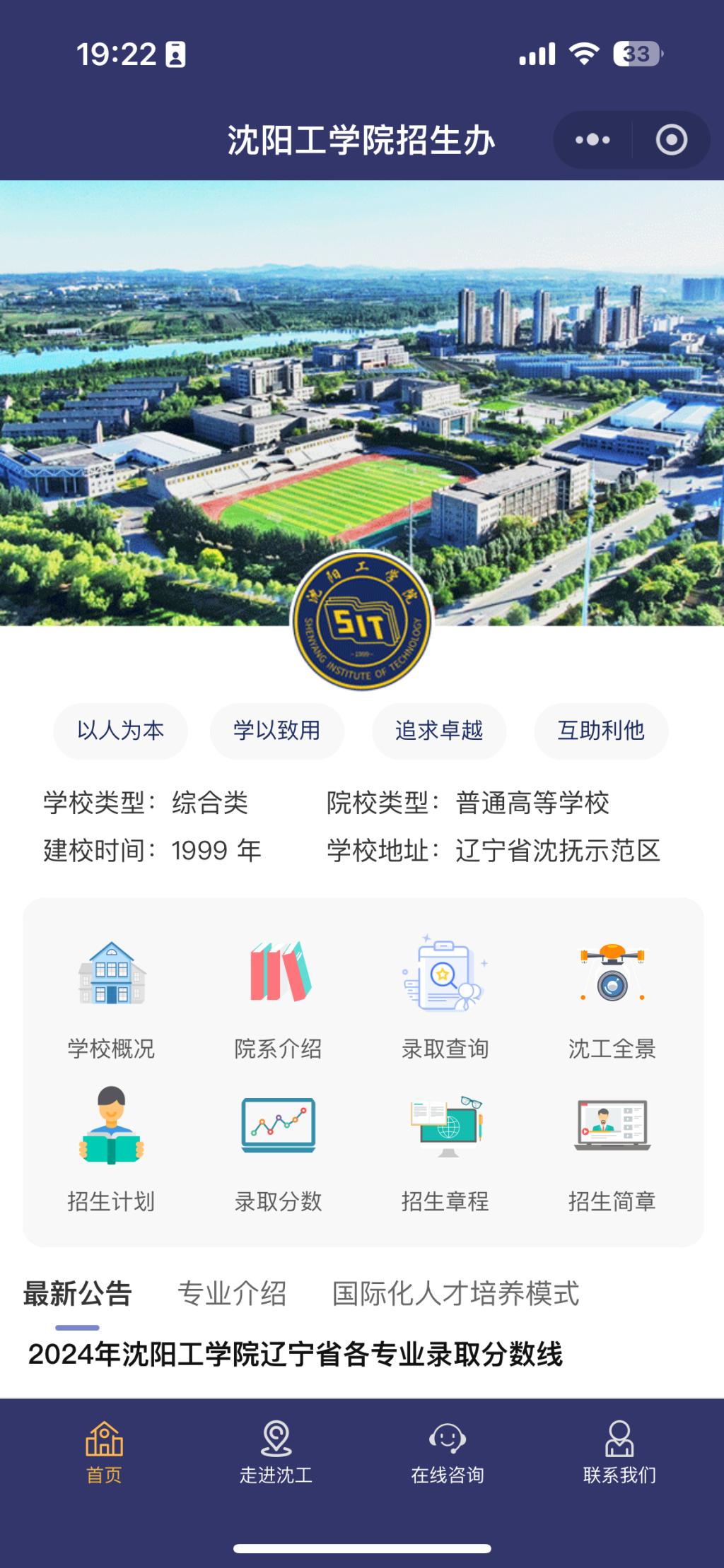 各位学子及家长可通过【沈阳工学院】招生官网、招生微信公众号和招生小程序三种方式进行在线咨询。
