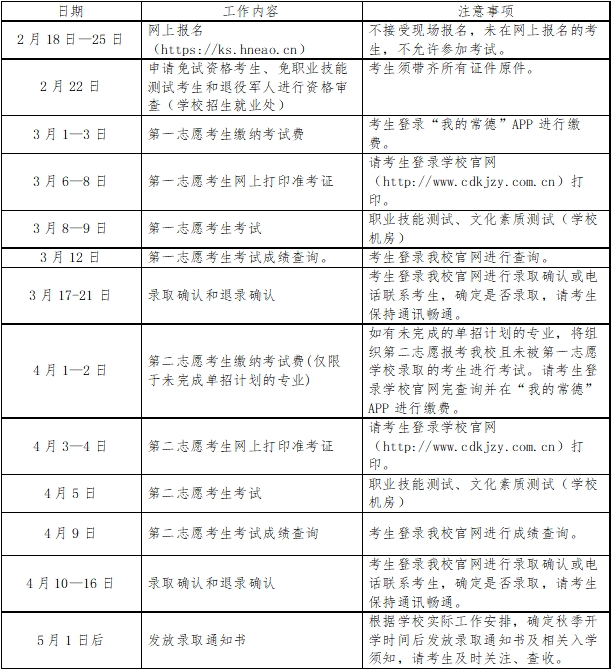 【招生信息】常德科技职业技术学院2025年单招工作日程安排表