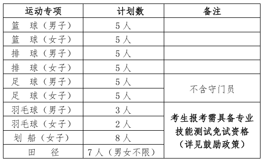 备注:最终招生专业及计划以教育厅下达为准。其中,体育教育专业按运动专项进行招生,各专项计划及要求如下: