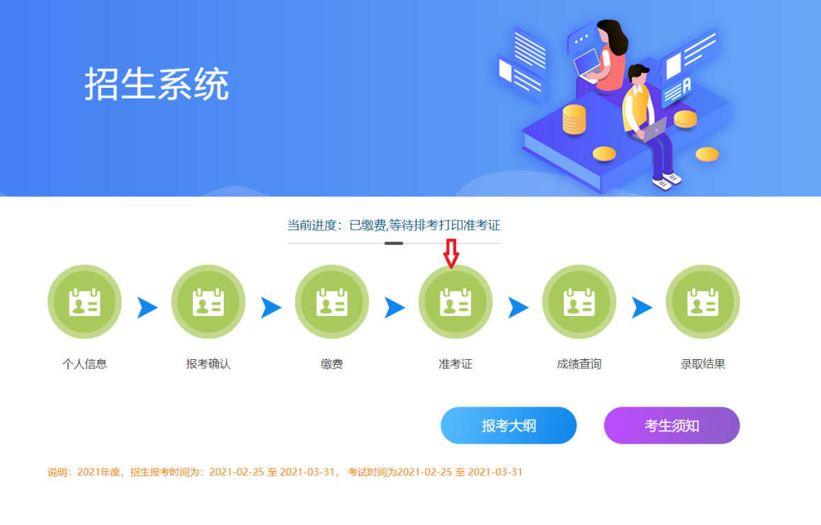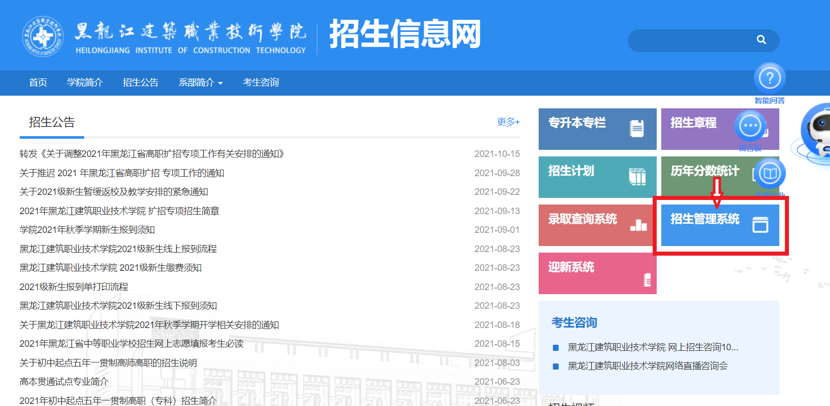 一、系统开放时间为3月3日9:00,点击进入“招生管理系统”进行准考证打印。