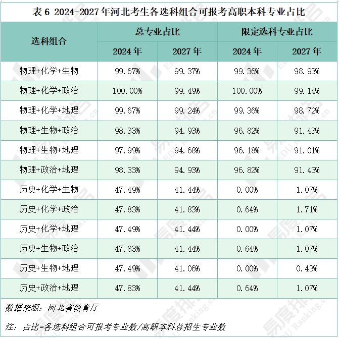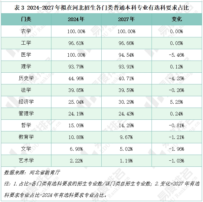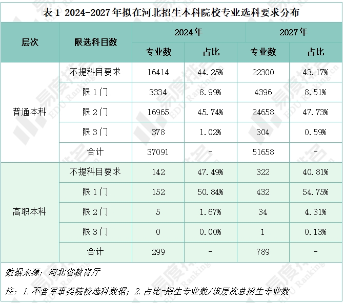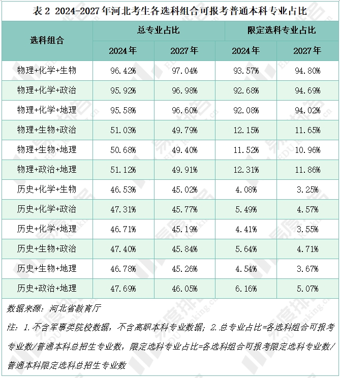 近期,河北省教育厅发布了2027年起拟在河北招生的普通高校专业选考科目要求。本文主要对2027年选科要求与之前发布的2024年拟在河北招生的普通高校本科专业选考科目要求进行对比分析。
