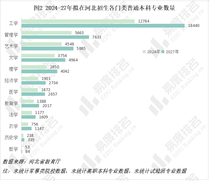 2027年拟在河北招生的本科专业达到52447个,较2024年增加超1.5万个,增幅达到40%。其中高职本科专业达到789个,增幅达到163%。