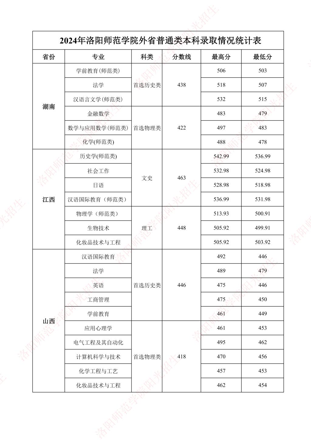2024年洛阳师范学院外省普通类本科录取情况统计表