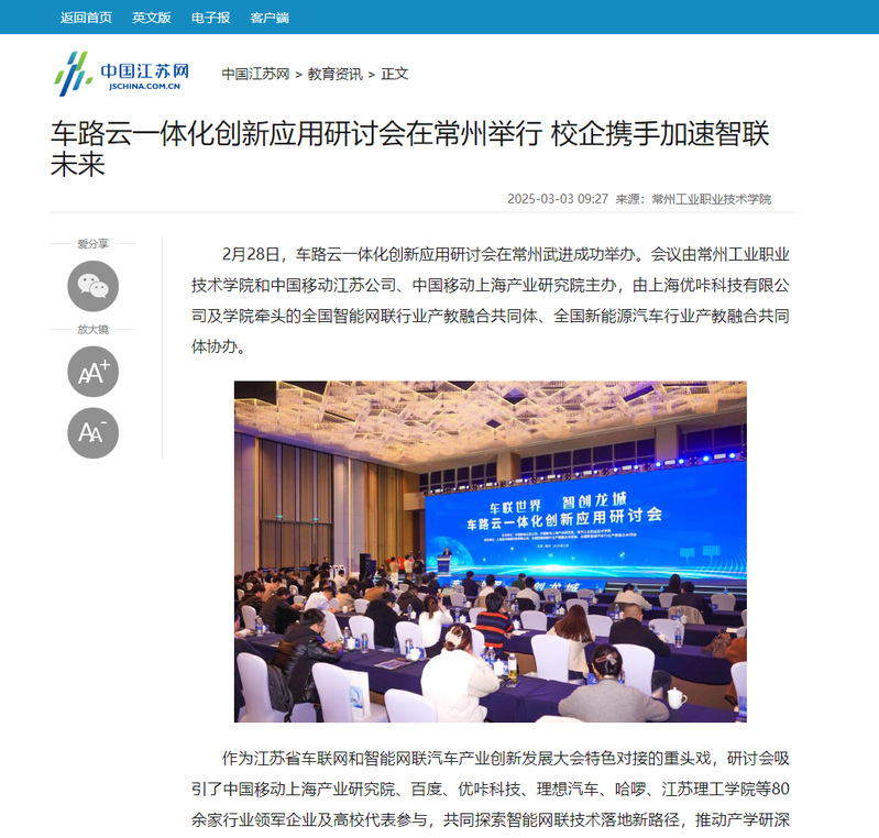 中国江苏网:车路云一体化创新应用研讨会在常州举行 校企携手加速智联未来