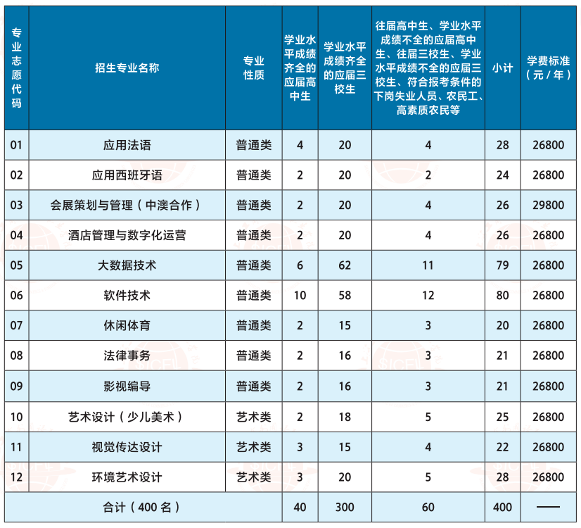 注:2.艺术类专业:艺术设计(少儿美术)、视觉传达设计、环境艺术设计与普通类专业不得兼报。