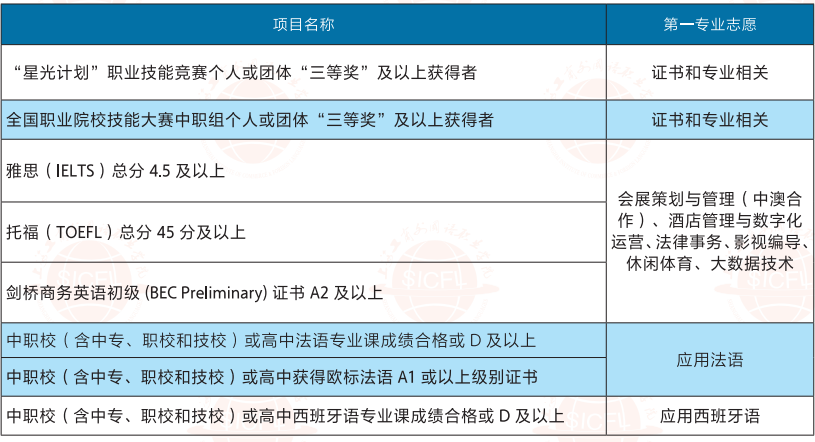 符合下表中一项条件者可报名参加“免笔试,面试入学”考试