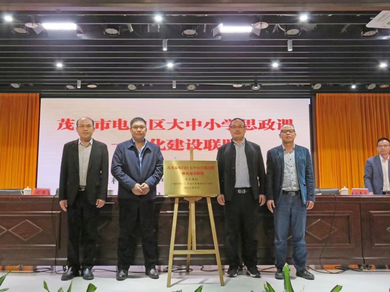 此次活动分为开幕式和研讨会两个议程,开幕式首先由电白区教育局领导宣读了《关于成立茂名市电白区大中小学思政课一体化建设指导小组的通知》,我校党委专职副书记元维社作为组长、马克思主义学院院长凌石德作为副组长、教研室主任张蕾、朱文勇、刘延庆以及郭君、朱权教授作为成员位列其中。随后凌石德代表学校参加了茂名市电白区大中小学思政课一体化联盟揭牌仪式,他还围绕推进大中小学思政课一体化改革创新做了交流发言,就我校在推进电白大中小学思政一体化建设中“做什么”“怎么做”提出了具体的建设性意见。