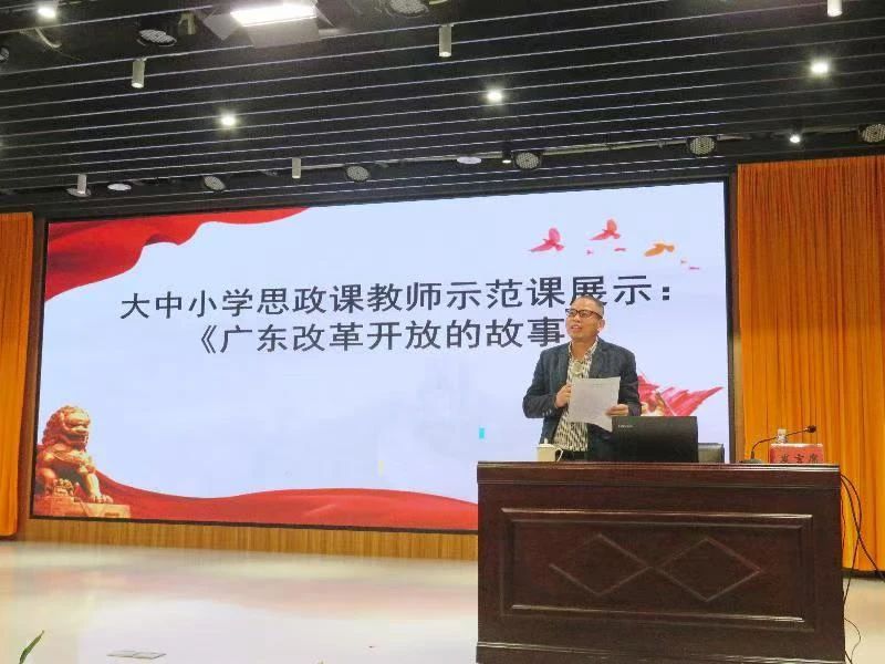 在专题研讨阶段,广州医科大学马克思主义学院院长龚超作了《关于新时代大中小学思政课一体化的理论逻辑与实践探索》的专题讲座。活动压轴则由小学、初中、高中、大学四个学段的四位优秀思政教师进行示范课教学展示,展示后由凌石德进行专家点评。他在点评中表示,四位教师都具有深厚的理论素养、丰富的教学经验,特别注重将新时代以来所取得的历史性成就融入教学,善于用身边人身边事从小处着眼讲好思政大道理,更为难能可贵的是教学中表现了对大中小思政课一体化建设的积极参与意识,教学起到了非常好的示范效应。