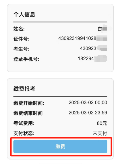 3.考试费支付时间:3月2日0:00—3月2日23:59