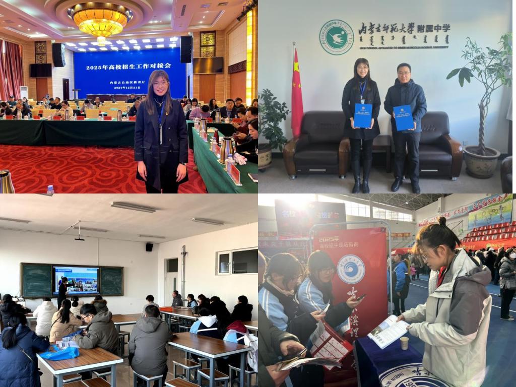 机械动力工程学院代表学校赴内蒙古自治区参加高校招生工作对接会,在呼和浩特(面向呼和浩特、包头、乌兰察布、巴彦淖尔、乌海、阿拉善盟2025届考生家长)、赤峰(面向呼伦贝尔、兴安盟、通辽、赤峰、锡林郭勒盟2025届考生家长)开展现场咨询,在内蒙古师范大学附属中学、赤峰新城红旗中学开展优质生源基地建设和专场招生宣讲。