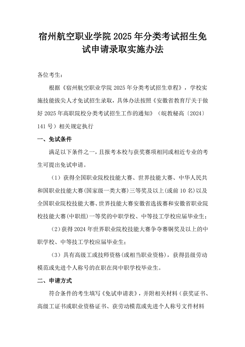 宿州航空职业学院2025年分类考试招生免试生申请表.docx