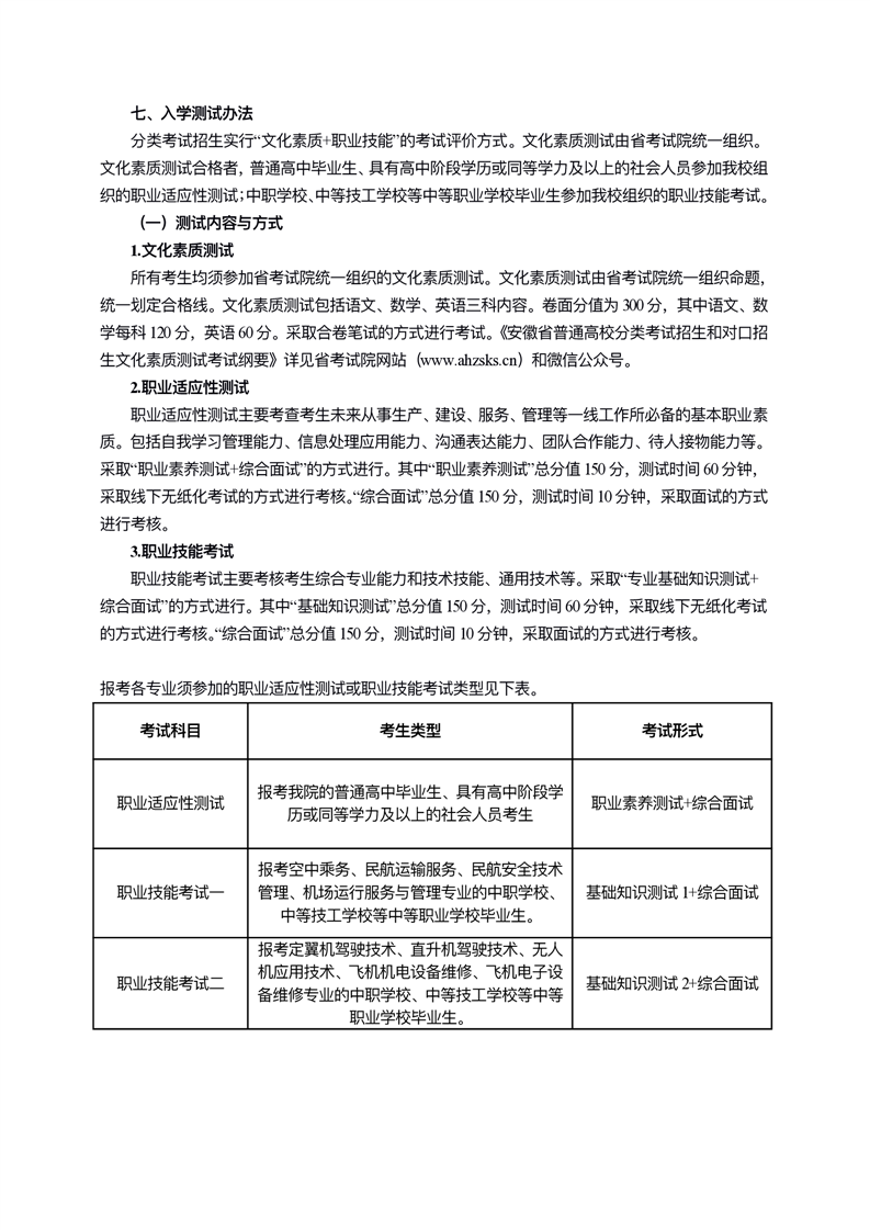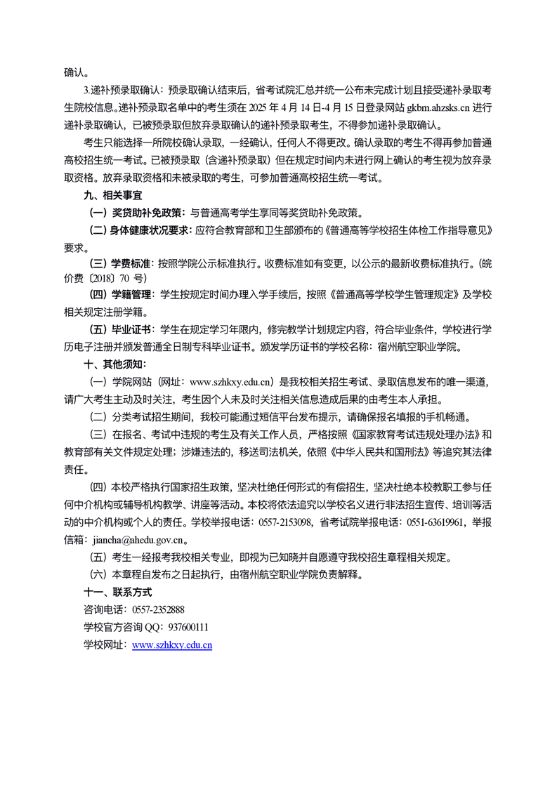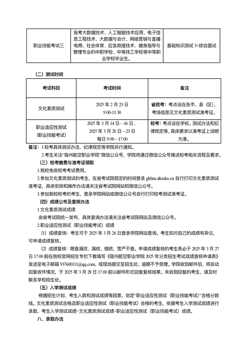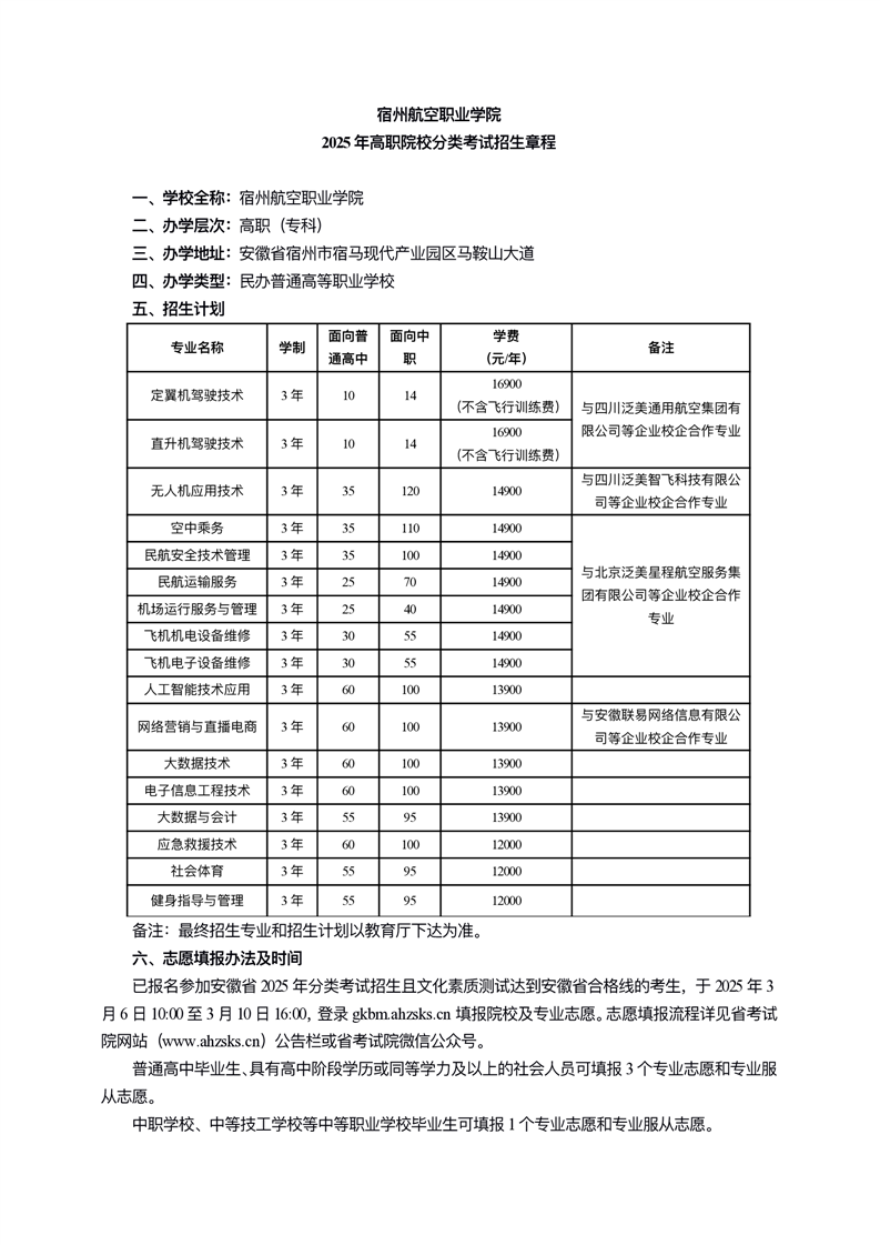 宿州航空职业学院2025年分类考试章程