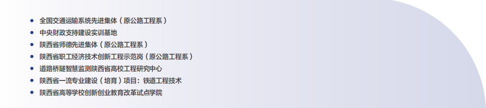 学院组织学生参加高铁精测精调大赛等技能竞赛,荣获全国交通运输职业院校学生无损检测技能大赛单项一等奖共4项;陕西省高职院校试验检测及土工技能竞赛团体一等奖2项、单项一等奖4项;第四届陕西省大学生工程制图与3D建模大赛单项一等奖1项;中国国际“互联网+”大学生创新创业大赛国家级铜奖2项、省级金奖2项、银奖4项等。【上下滑动查看更多内容】