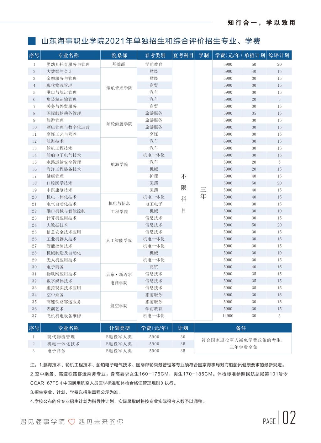 山东海事职业学院2021年单独招生、综合评价招生简章