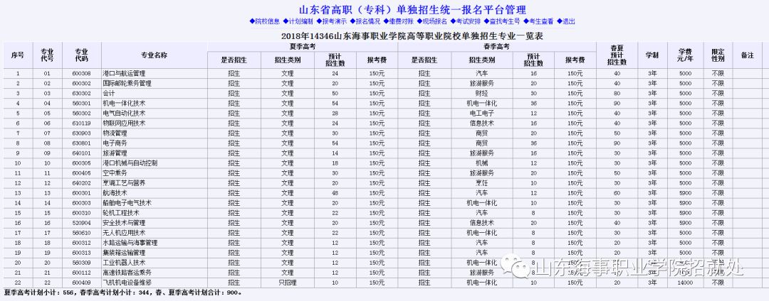 4月15日 | 上午 9:30—11:30 | 语文、数学、英语 (三科合卷) | 笔试 | 山东海事职业学院 |