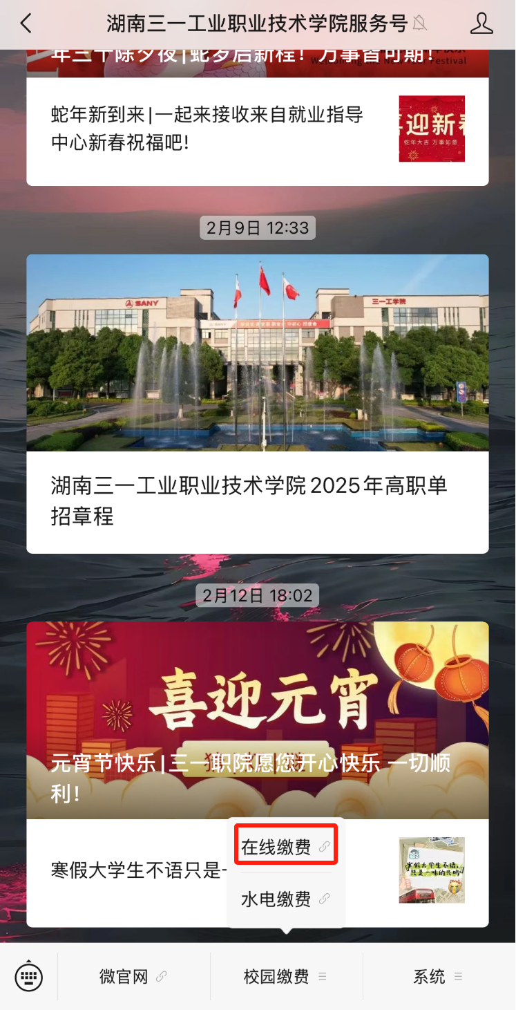 进入学校微信服务号