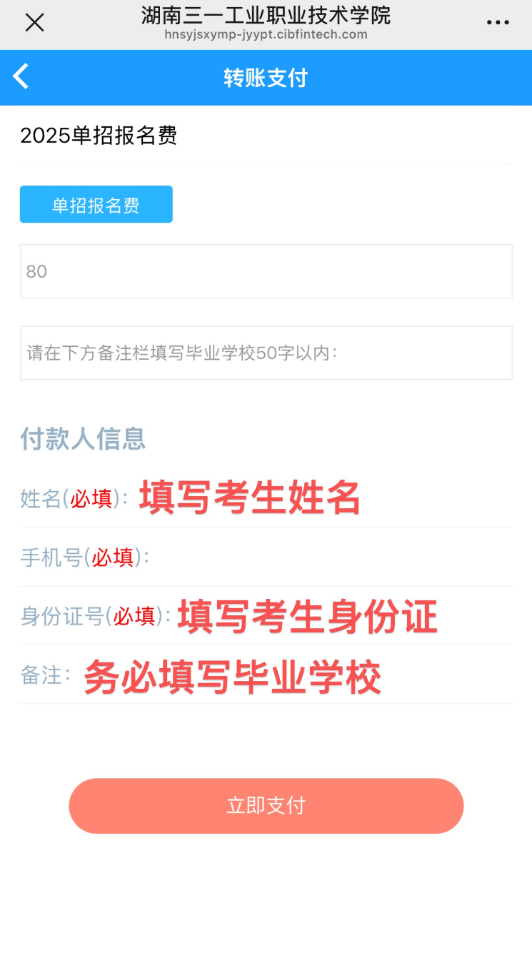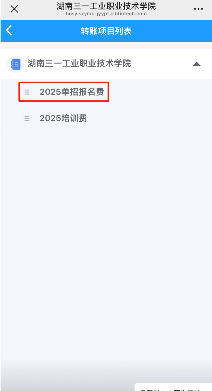 点击 2025 单招报名费进行缴费