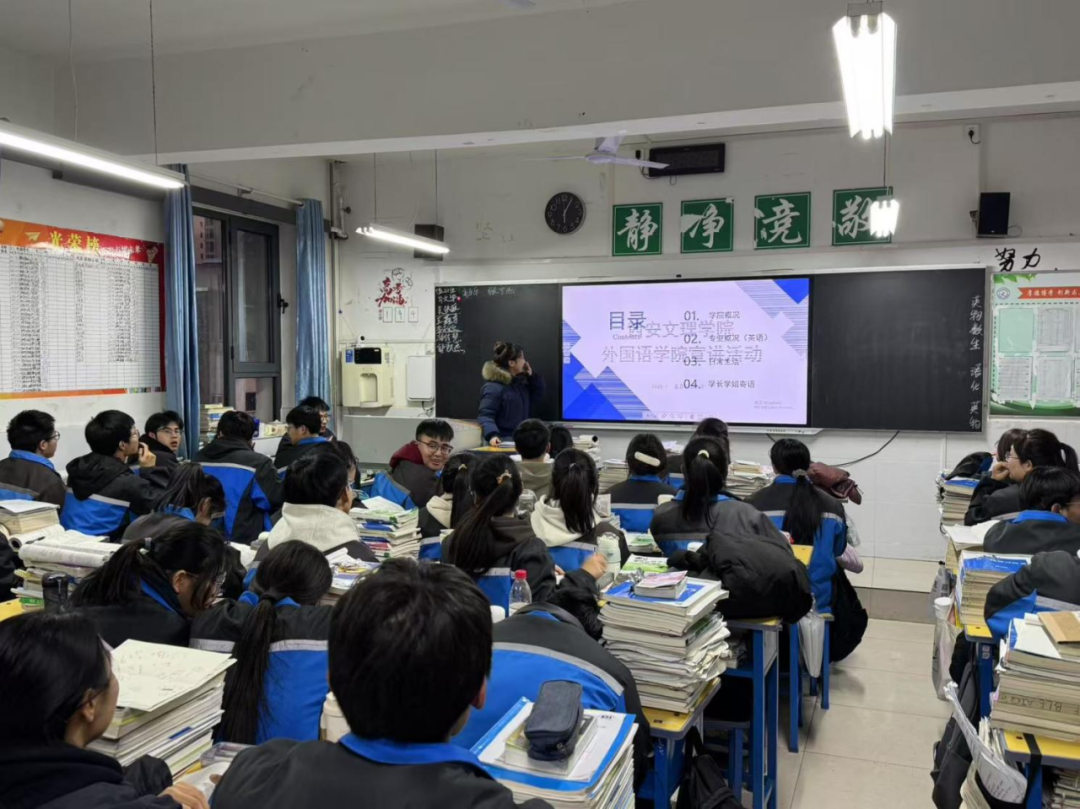 2月14日,西安文理学院外国语学院英语专业学生李想返回母校商洛市镇安中学,面向高三83名学生开展招生宣讲活动,通过精准化宣传助力高校与中学教育衔接。