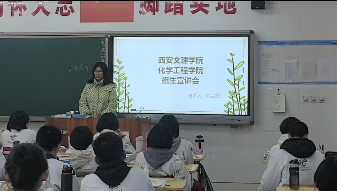 1月13日下午,21级食品专业的刘莹代表团队走进西安西港花园高级中学,为高三学子带来一场别开生面的大学宣讲。团队成员为在场的52名同学发放了精心准备的宣传册,详细介绍了西安文理学院的综合实力、特色专业,尤其是化学工程学院的专业优势、校园生活及奖助政策。不少同学在互动中表示,通过这次宣讲,对西安文理学院有了全新且深入的认识,学校丰富的专业设置、多彩的校园生活以及完善的奖助政策都深深吸引着他们。