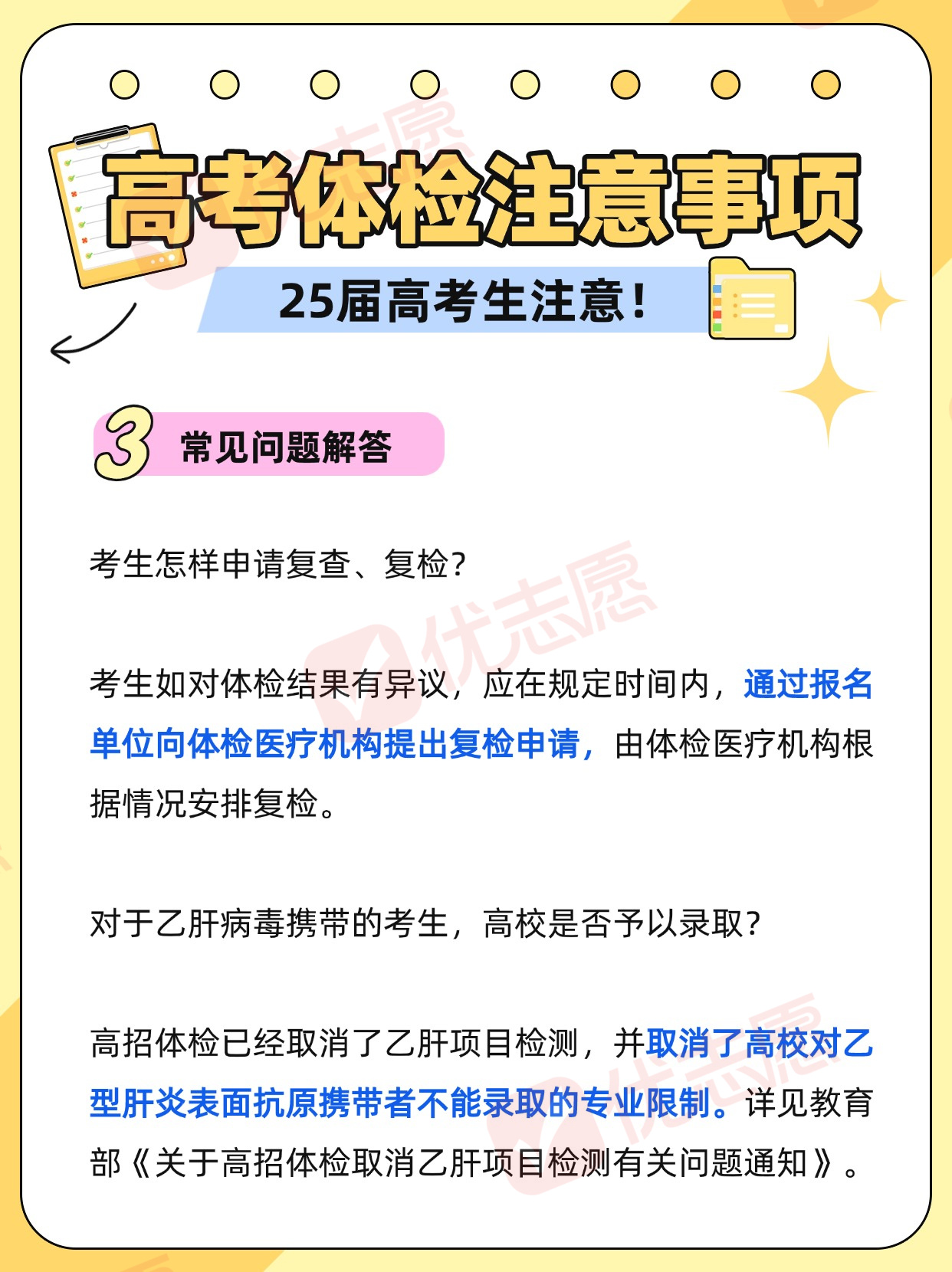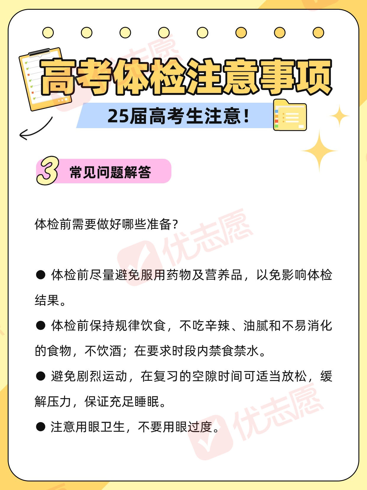 近日,各省陆续启动高考体检工作。体检包括哪些项目?体检前同学们需要做好哪些准备,一起了解!