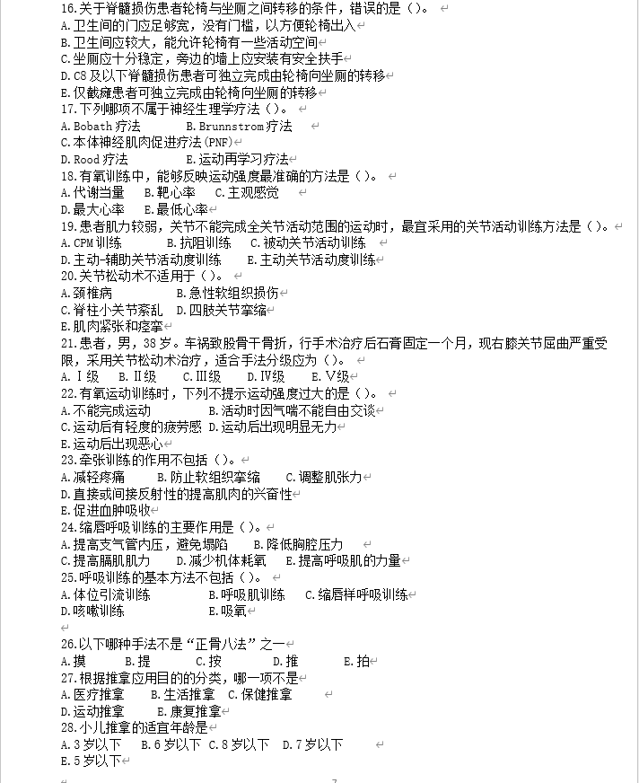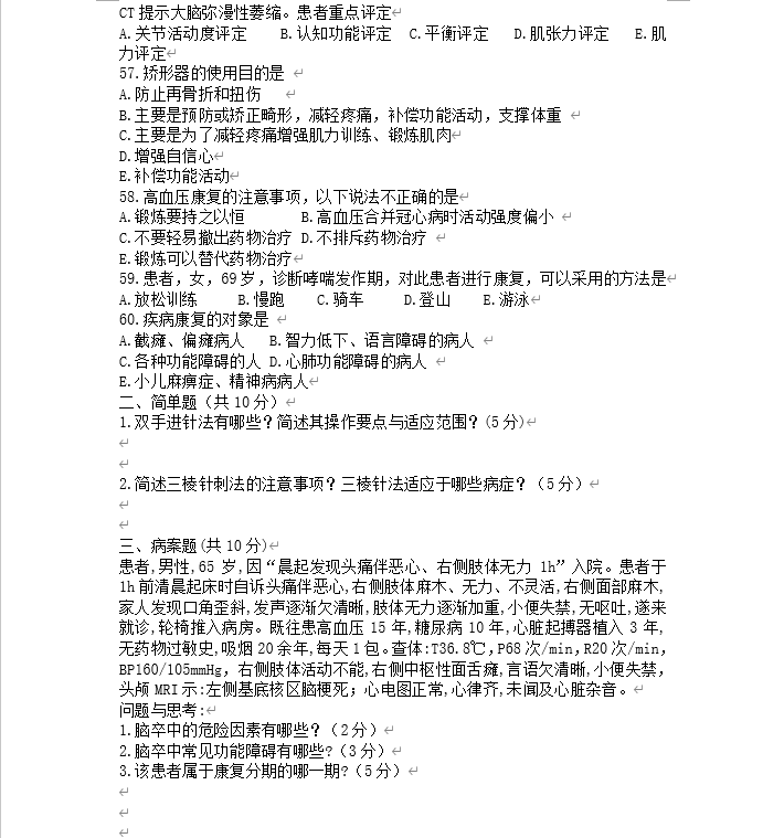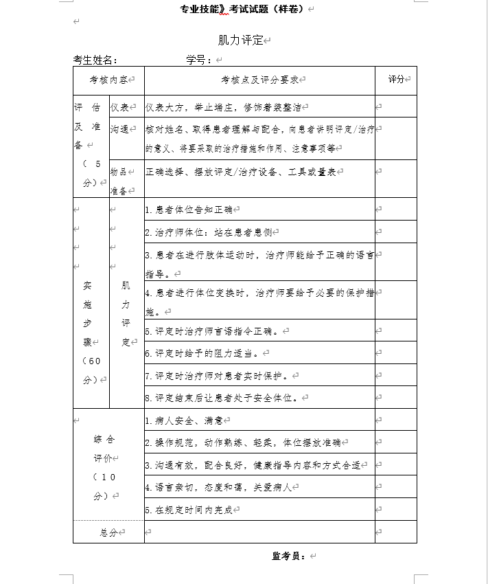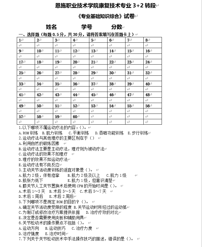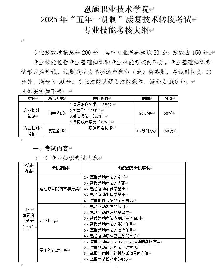 恩施职院2025年五年制转段考试大纲及样卷(康复治疗技术专业)