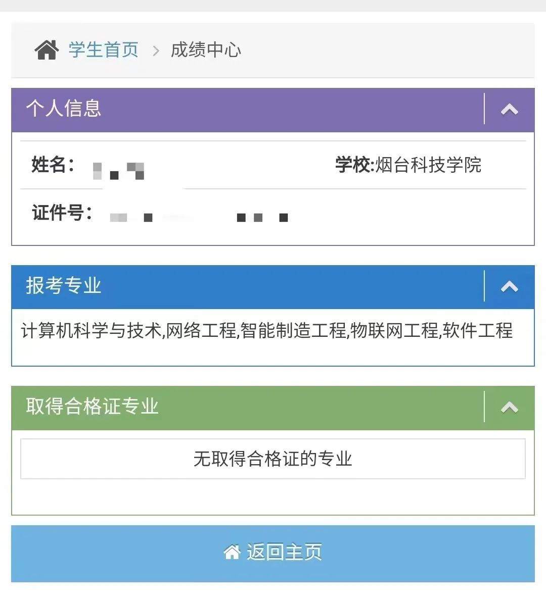 如果查询结果显示“无取得合格证的专业”,则表示未取得合格证。如有异议,可于3月7日中午12:00前提出复核申请进行复核,复核结果为最终结论,咨询电话:0535-5777796。